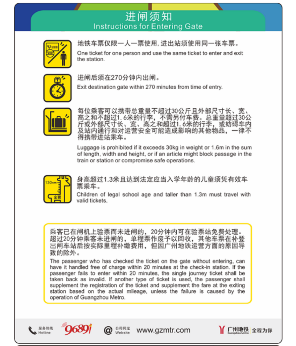 注意:乘客已在闸机上验票而未进闸的,20分钟内可在验票站免费处理。超过20分钟乘客未进闸的,单程票作废予以回收,其他车票在补登出闸车站后按实际里程补缴费用。