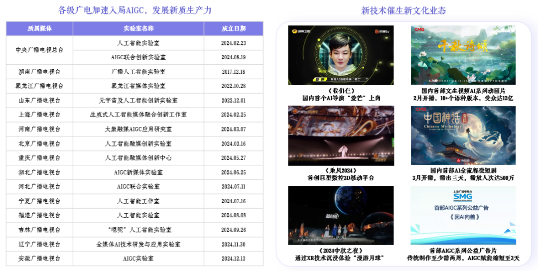 各级广电机构加速布局AIGC,发展新质生产力,赋能内容生产。未来随着技术的不断进步和应用场景的不断拓展,新技术有望在内容制作领域发挥更大的作用,为观众带来更加丰富的视听体验。