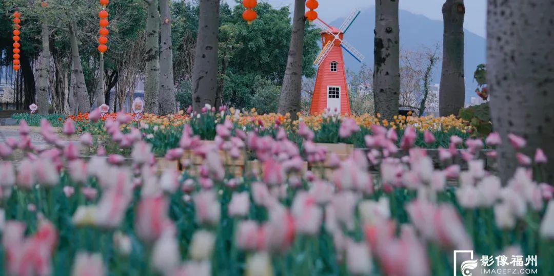 今年公园还增设了多个打卡点,最受欢迎的风车花田中一座5米高的风车房伫立在花海中央,成为游客拍照的绝佳地,公园里游人如织,尽享春色。