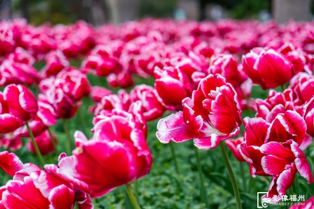 明媚春光,繁花绽放,福州乌龙江公园内艳丽缤纷的郁金香花田正呈现热烈的醉人美景,跟着郁金香的“脚步”,寻觅福州春天的足迹。