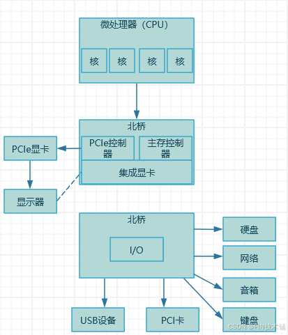 在移动与嵌入式领域,系统级芯片(SoC)将传统南北桥功能完全整合: