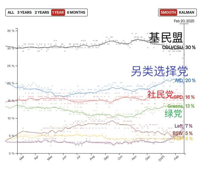 (美国特朗普政府、世界首富马斯克对另类选择党的支持暂时没有体现在民调数字中)